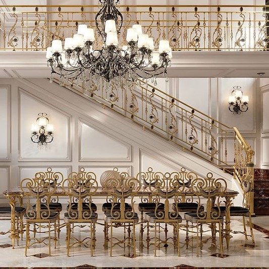 Латунное ограждение с сияющим позолоченным покрытием, дополненное матовыми вставками из чёрного никеля. Гармоничное сочетание завитков и листьев с изящными колоннами придаёт этой модели неповторимый характер и вечную элегантность.