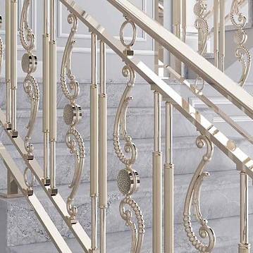 Эта изысканная балюстрада выполнена из высококачественной латуни с сияющим позолоченным покрытием. Её украшают элегантные колонны, чередующиеся с завитками и медальонами, искусно выполненными вручную чеканкой. Массивный латунный поручень придаёт конструкции прочность и благородство, завершив образ вечной элегантности.