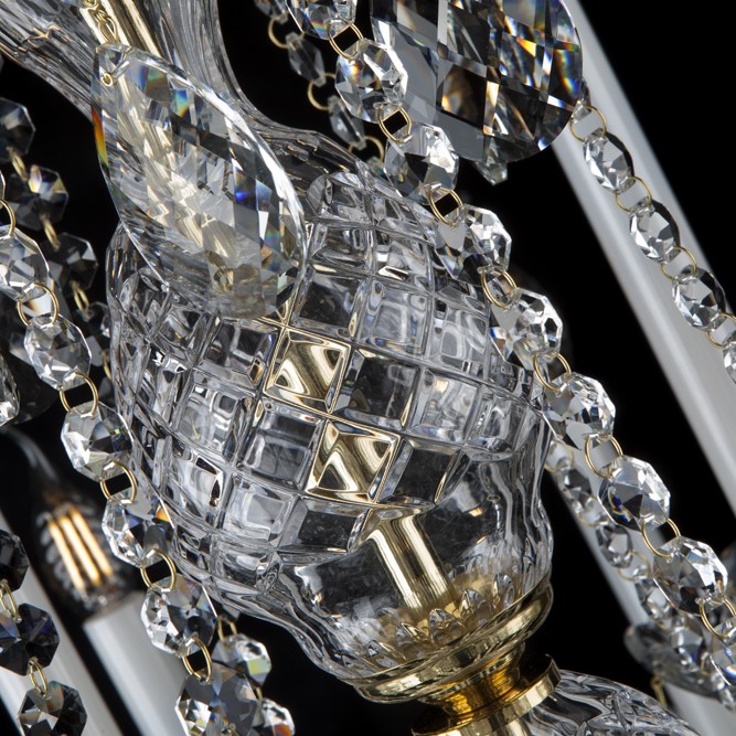 ومن السمات المميزة لهذا النوع من الثريات "الشموع" الطويلة تحت كل مصباح، والتي تضيف طابعًا تقليديًا راقيًا. هذه الثريا مثالية للمساحات الواسعة ذات الأسقف العالية، مثل قاعات الحفلات، القصور التاريخية، الفيلات الفاخرة أو صالات الاستقبال الرسمية.