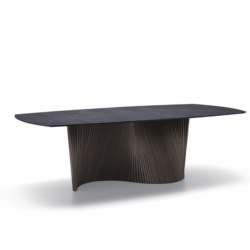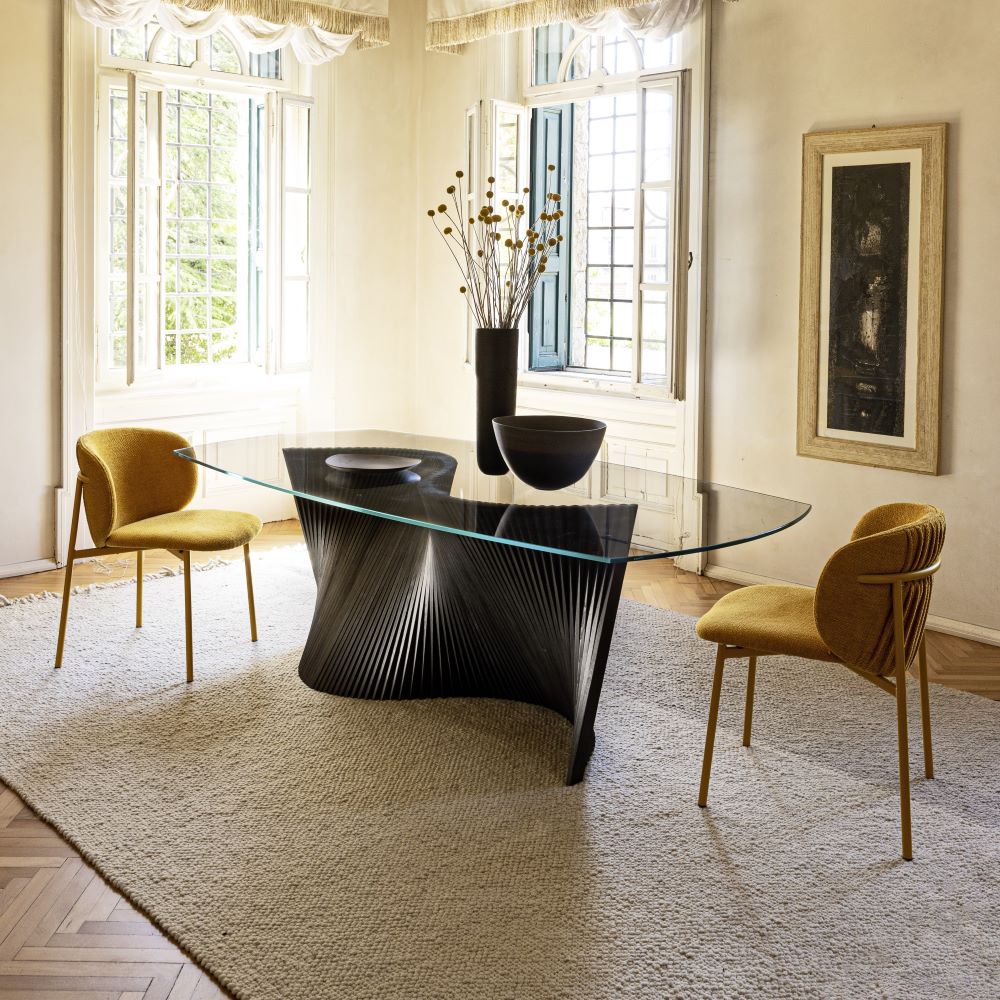 When viewed from above, the base of this designer table evokes the mesmerizing orbit of the moon, inspiring its name. As the first table in the Wave collection, Orbit marked the beginning of a successful era for Natisa. Guided by a vision of pure engineering, skilled artisans meticulously crafted this internationally patented table, strip by strip, creating a piece that is perfect for both home interiors and prestigious business meeting rooms.