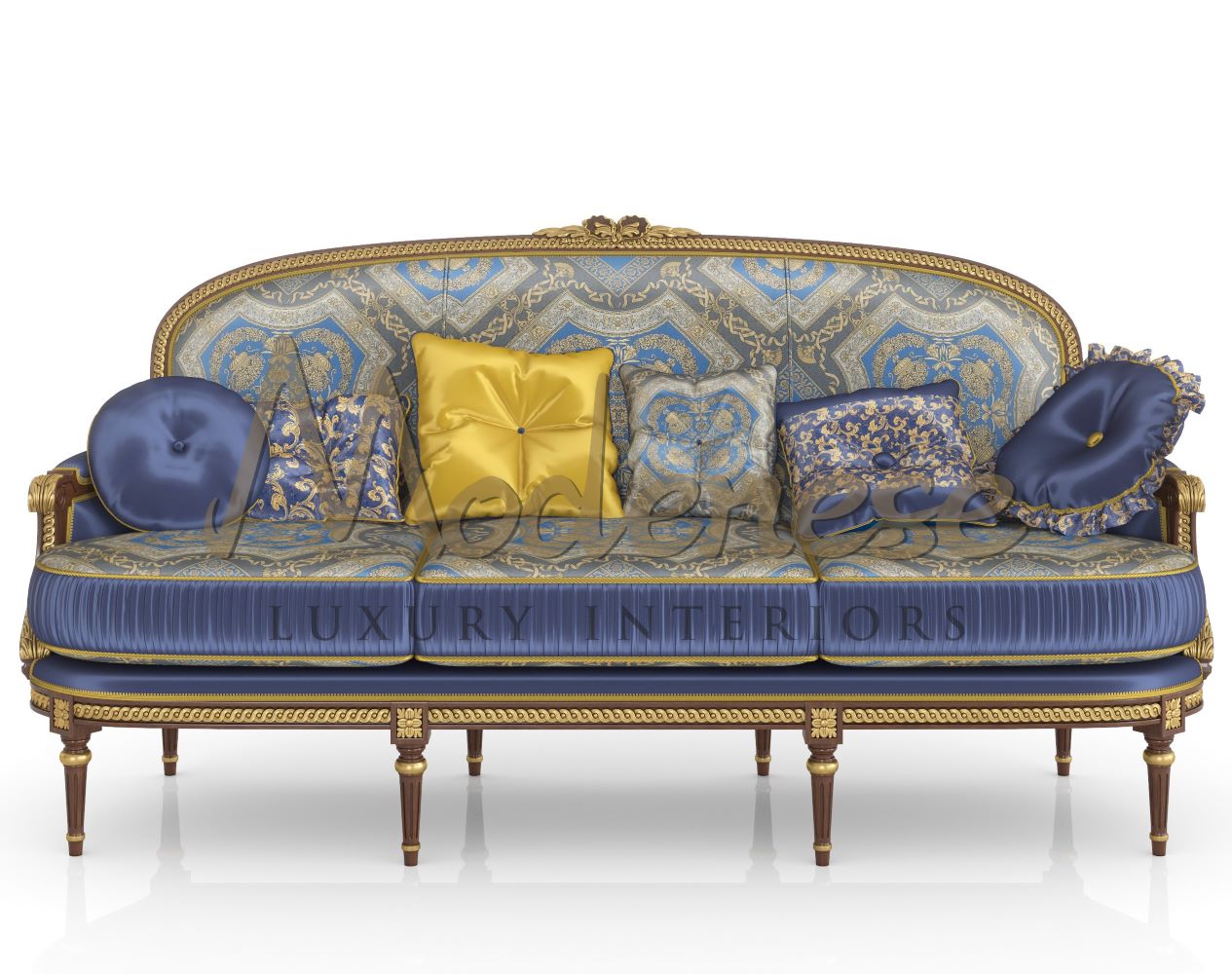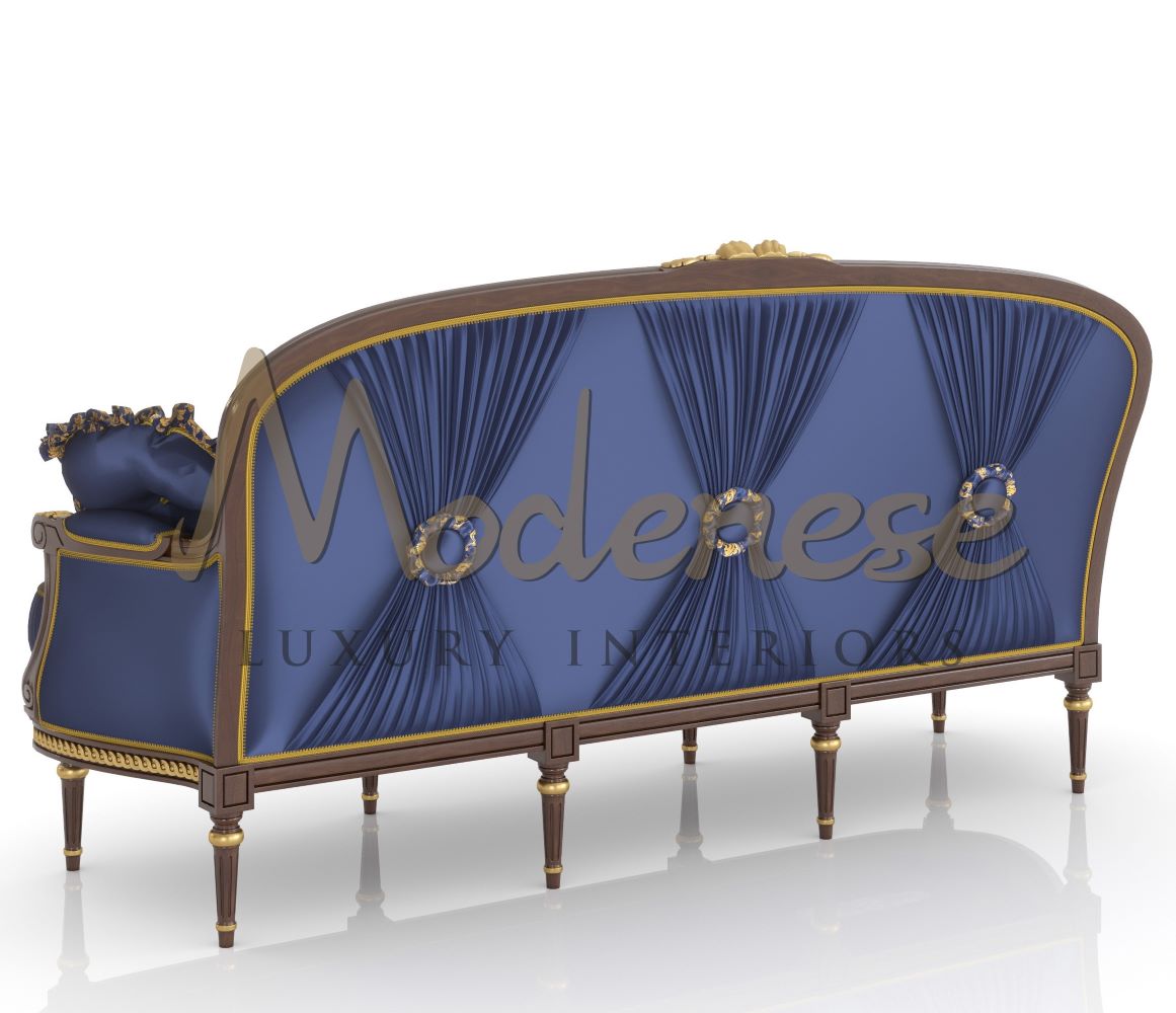 Frame: Crafted from classic cherry wood, the sofa is accentuated with hand-carved golden decorative elements, adding a touch of opulence and refinement.