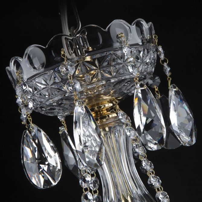 This stunning crystal chandelier features 42 light bulbs with elegant metallic capsules, arranged across three majestic tiers. The frame is crafted from hand-blown and finely cut glass components, including delicately cut glass bowls adorning each arm. Its brilliance is elevated by an abundance of precision-cut lead crystal trimmings that, through perfect light refraction, bathe your interior in a dazzling spectrum of colors.